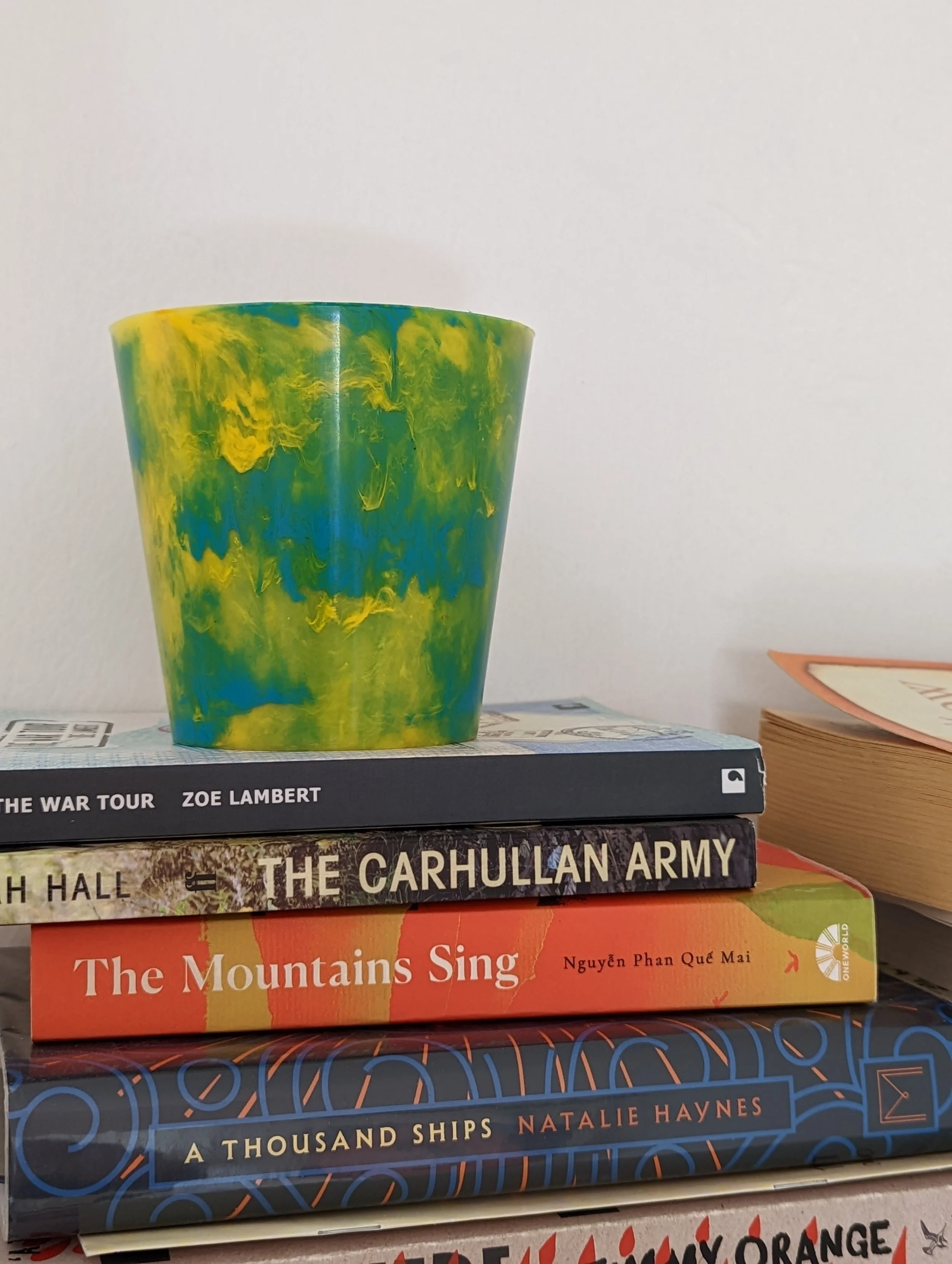 Drawing from a stock of DVD cases, coat hangers, tupperware lids, plastic bottle tops, and more to create our handmixed colours.